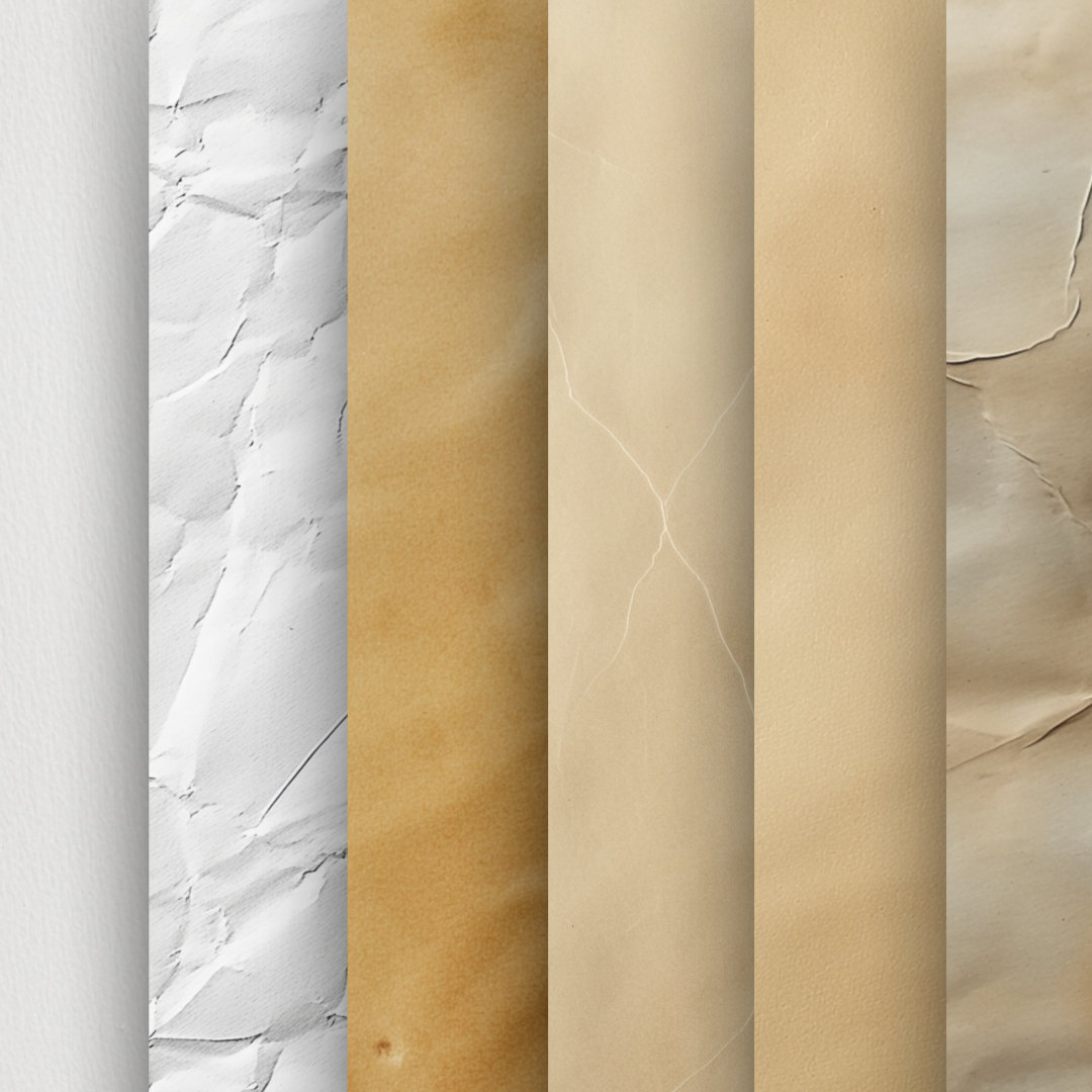Add subtle texture with canvas, parchment, and watercolour paper — perfect for giving your flash sheets a finished, professional look.