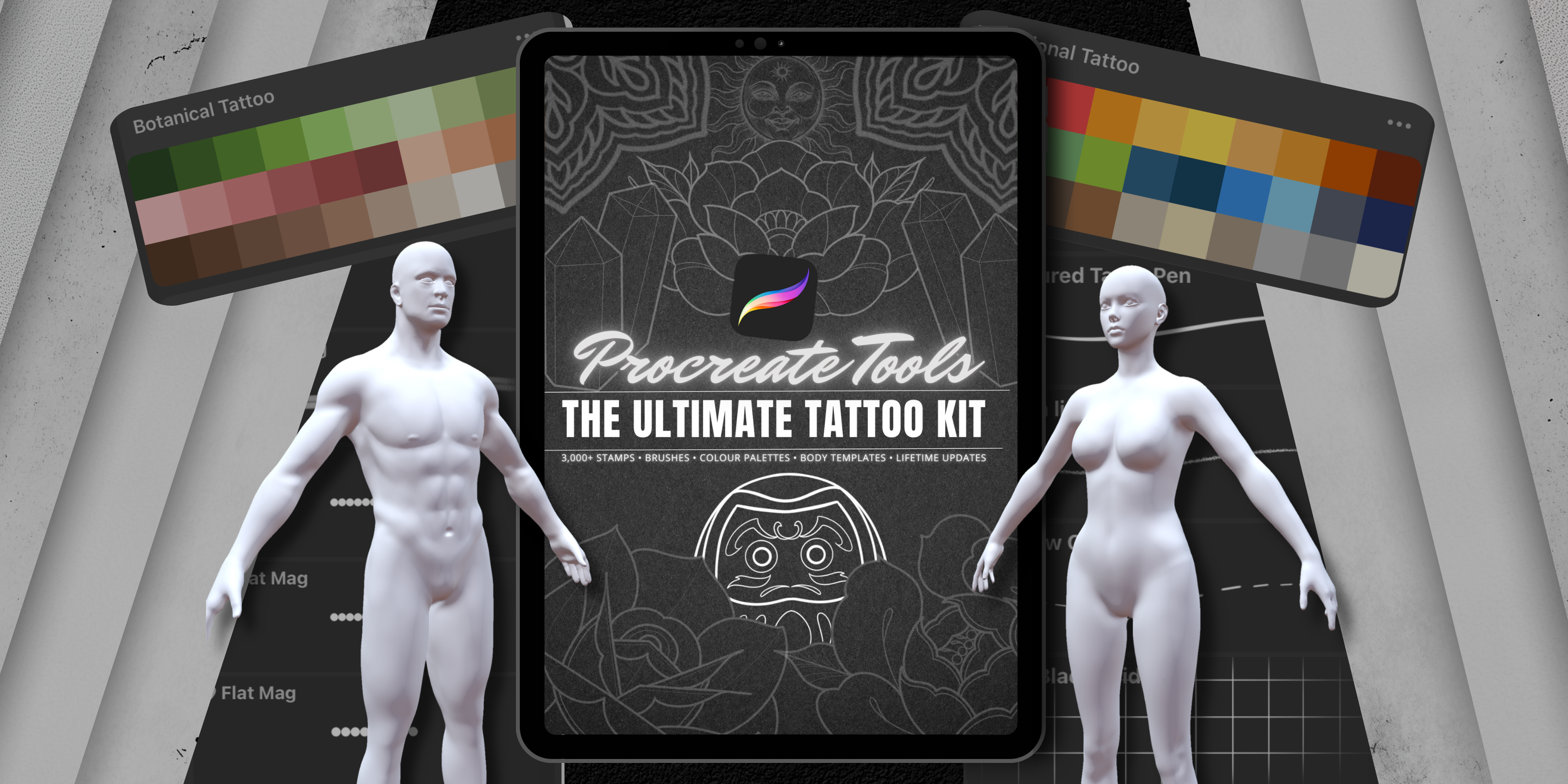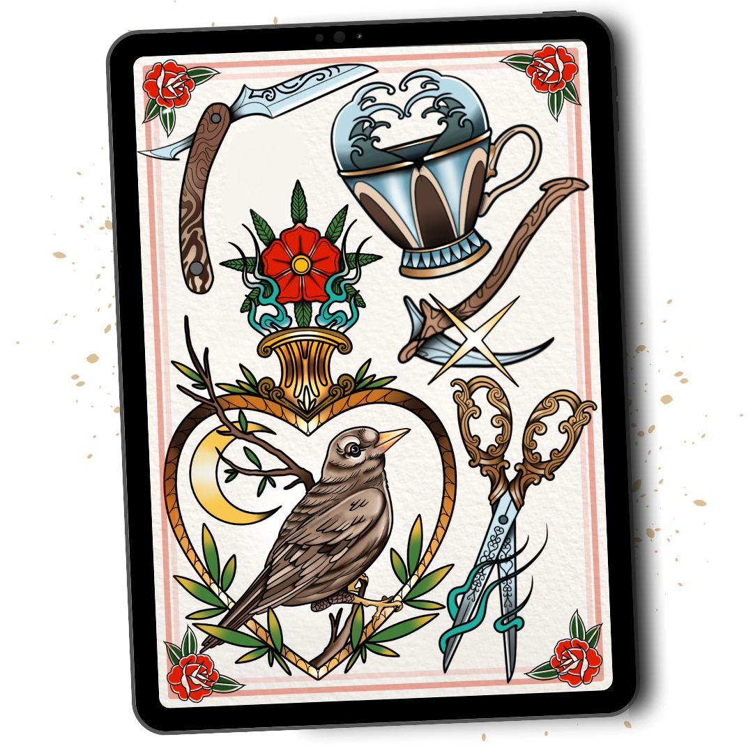 The Ultimate Procreate Tattoo Design System brings it all together into one structured, professional system.