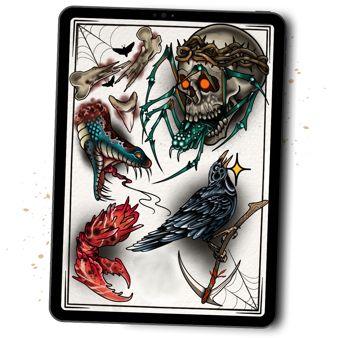 Every asset inside this bundle has been designed around real tattoo workflow: