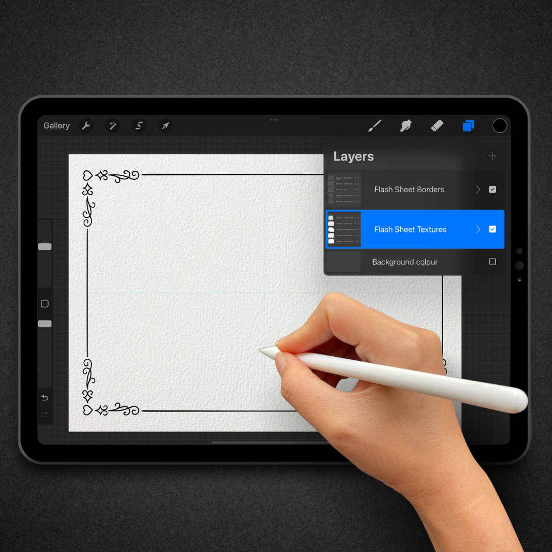 Bring your flash sheets to life with high-quality textures — including paper, canvas, watercolour, and fabric finishes. Perfect for adding realism and polish to your final presentation.