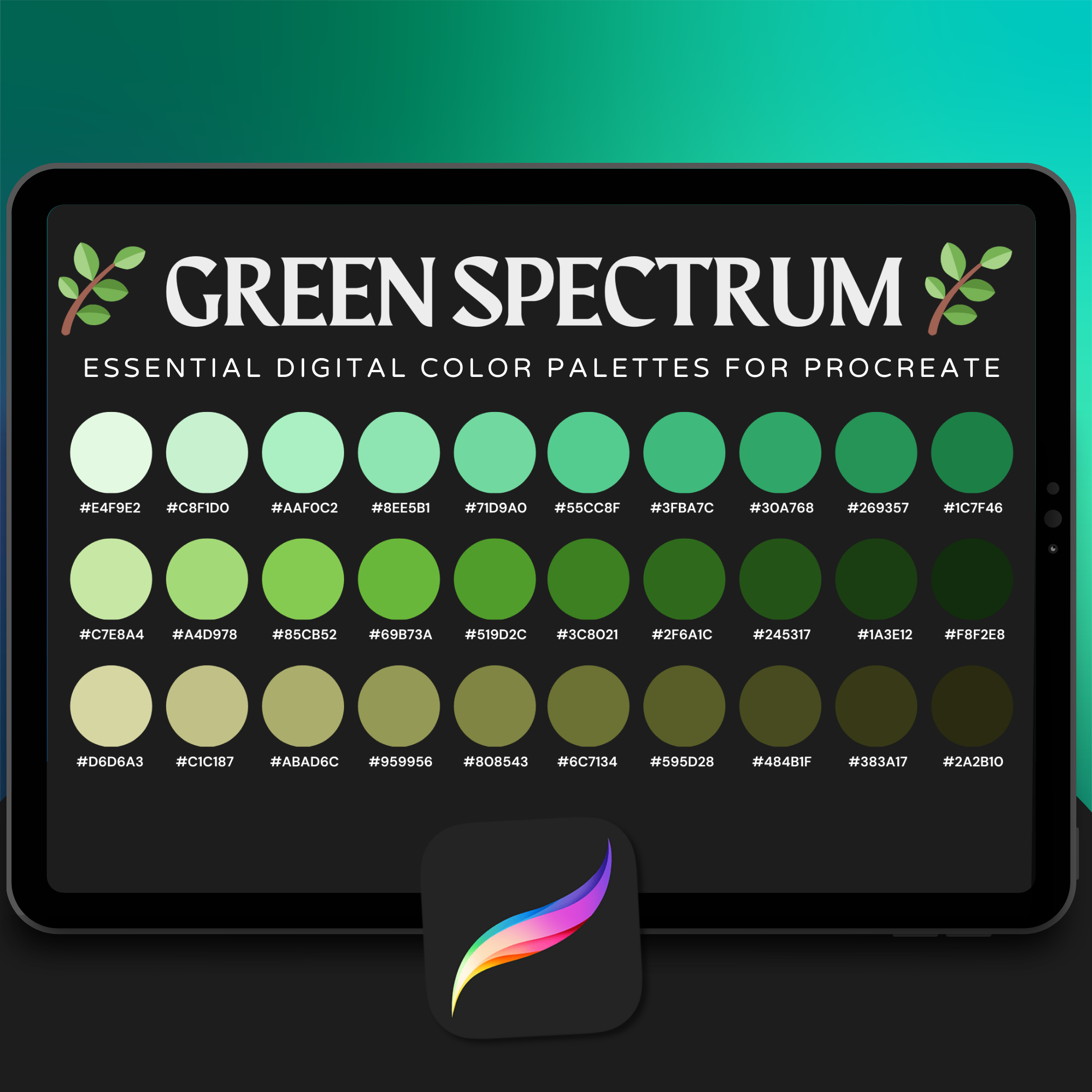 Green Spectrum Tattoo Colour Palette for Procreate – Nature-Inspired Ink Tones + Hex Chart